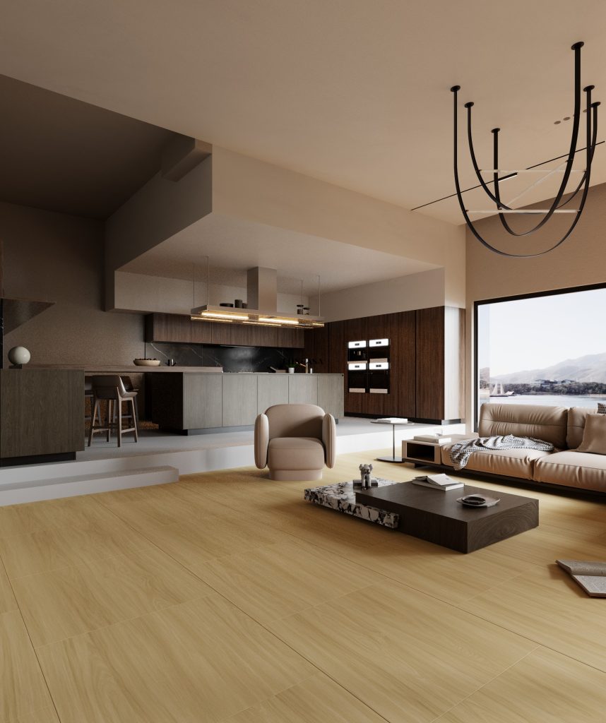 Nhờ kích thước lớn 80×80, gạch giả gỗ tạo mặt sàn liền mạch, gọn gàng và dễ vệ sinh, phù hợp cho nhiều phong cách thiết kế từ hiện đại đến nghỉ dưỡng.
