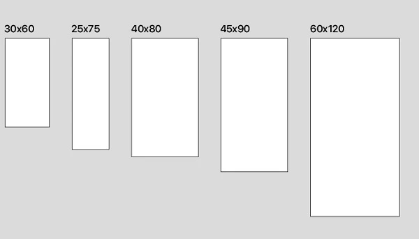 Gạch Ceramic 300×600 mm: Kích thước lý tưởng cho ốp tường nội thất, thường được dùng ở các khu vực như nhà tắm, bếp, phòng khách nhỏ hoặc tường mặt tiền, mang lại cảm giác gọn gàng và tinh tế.