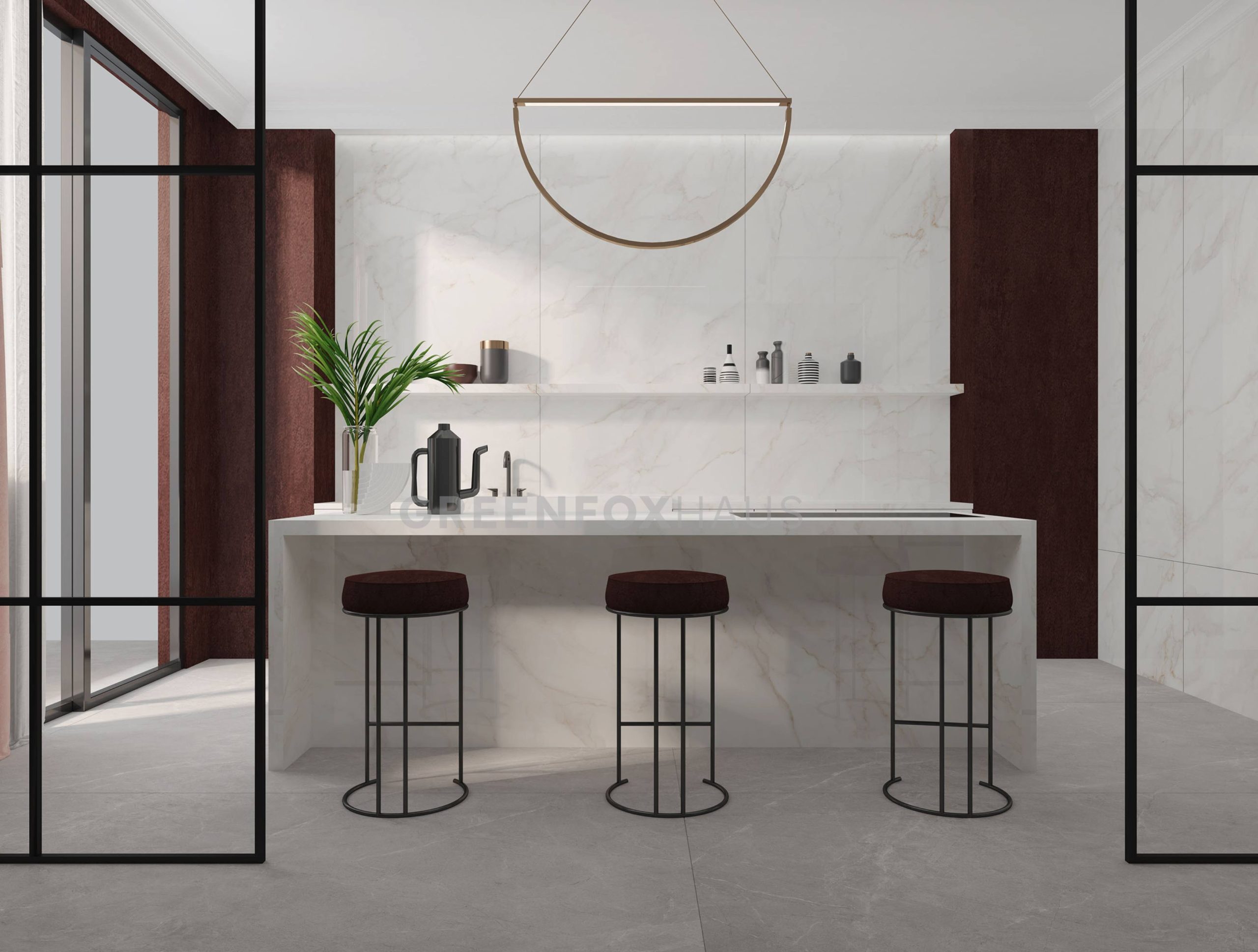 Bề mặt Polished (bóng) giúp tăng khả năng phản xạ ánh sáng, làm không gian trở nên sáng hơn và có chiều sâu hơn. Đồng thời, lớp bóng giúp tôn lên rõ nét các đường vân marble, mang lại hiệu ứng cao cấp tương tự đá tự nhiên.