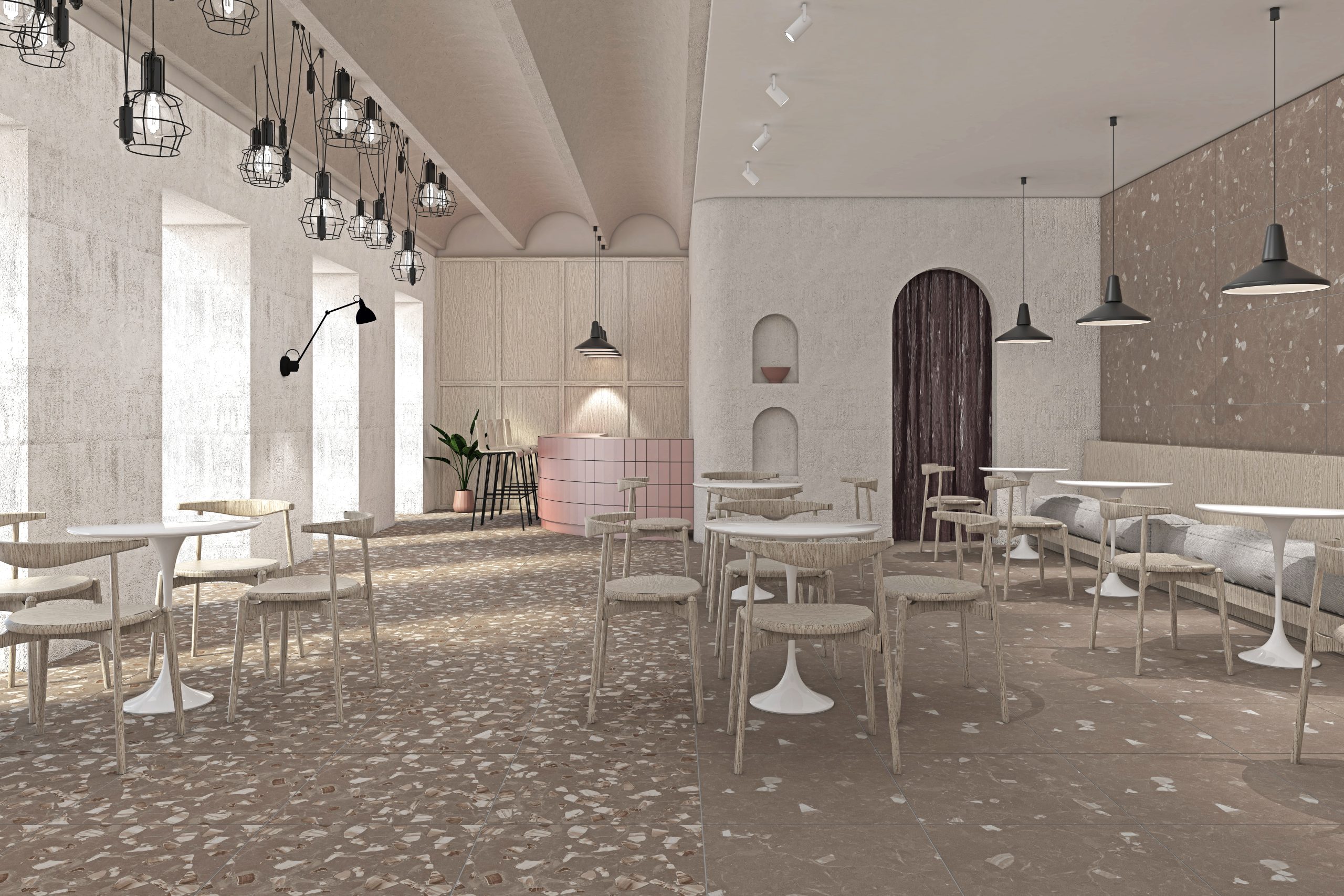 Gạch terrazzo 60x60 nổi bật với các hạt đá đa màu, mang lại nét cá tính và trẻ trung cho không gian. Loại gạch này thường được sử dụng làm nền phòng khách, quán café, showroom hoặc khu vực sinh hoạt chung.
