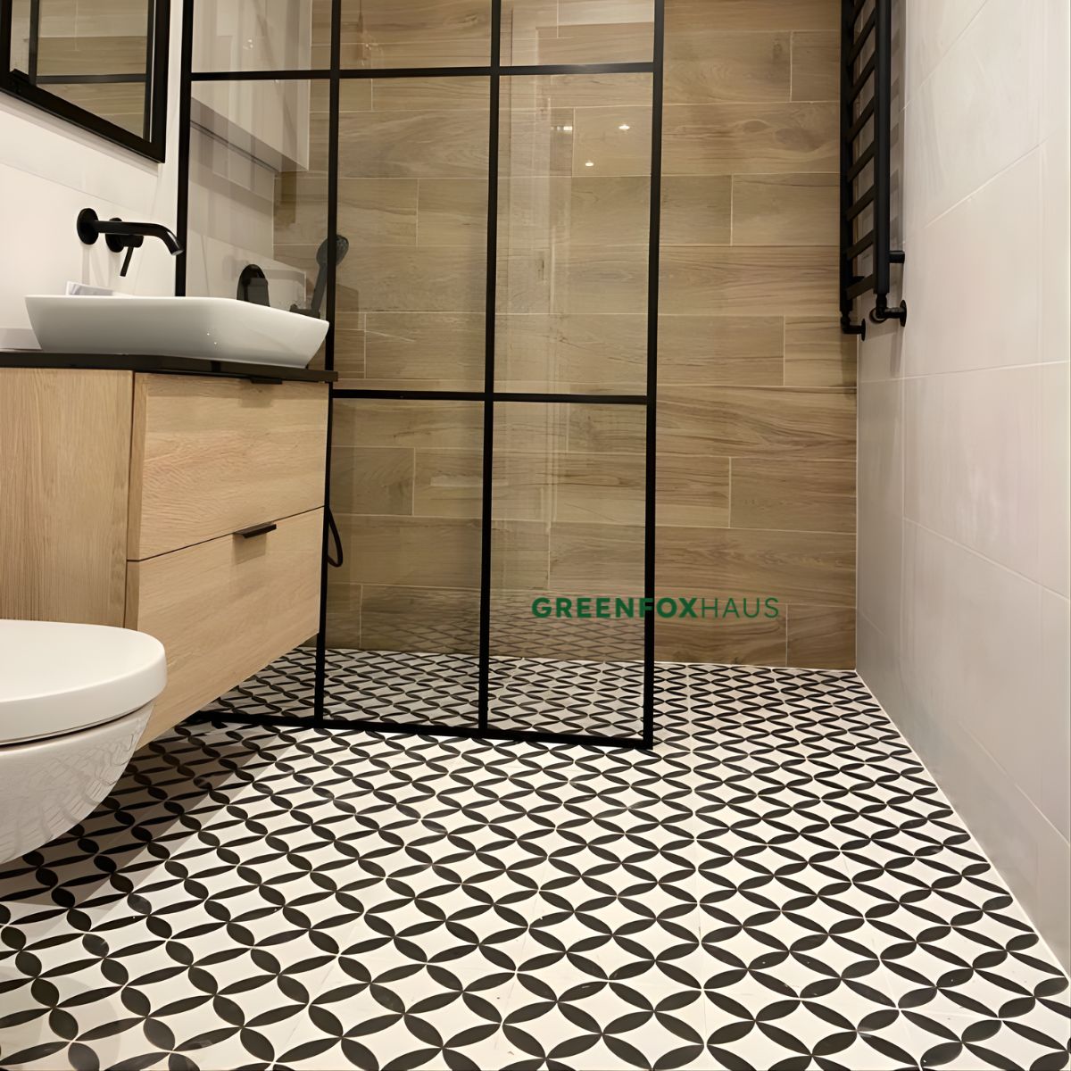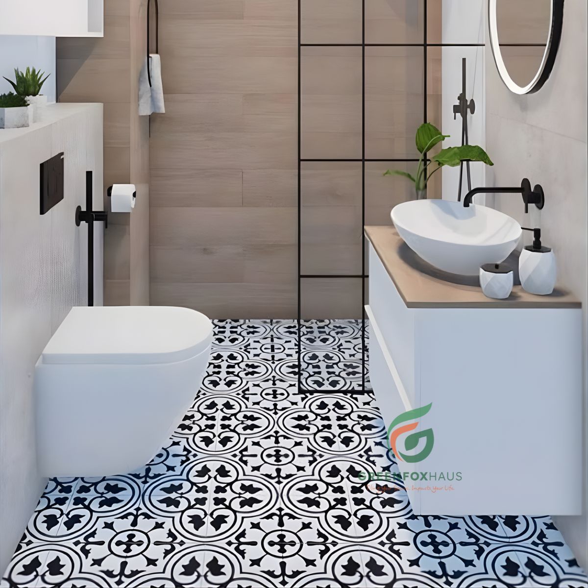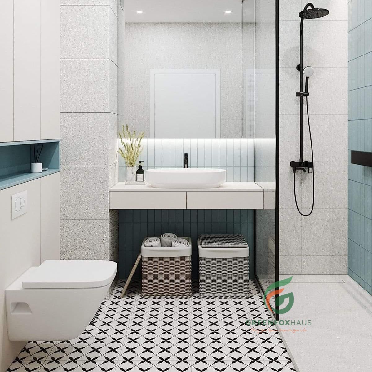 Nếu bạn muốn tạo điểm nhấn khác biệt, gạch ốp lát nhà vệ sinh dạng gạch bông với hoa văn cổ điển là lựa chọn tuyệt vời. Mẫu gạch phòng tắm đẹp này thường được dùng để lát một khoảng diện tích nhỏ hoặc tạo thảm trang trí, mang lại sức sống mới cho nền nhà tắm.