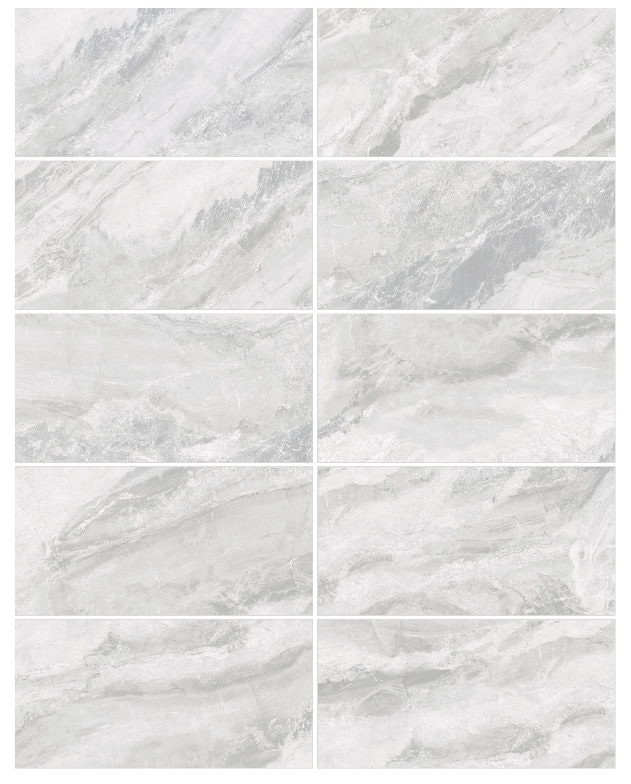 Mẫu gạch GF37.GLC01 nổi bật với nền trắng xám sáng kết hợp các đường vân marble uốn lượn mềm mại, tạo nên hiệu ứng bề mặt sang trọng và có chiều sâu. Các lớp vân được phân bổ tự nhiên giúp không gian trở nên thanh thoát và tinh tế.