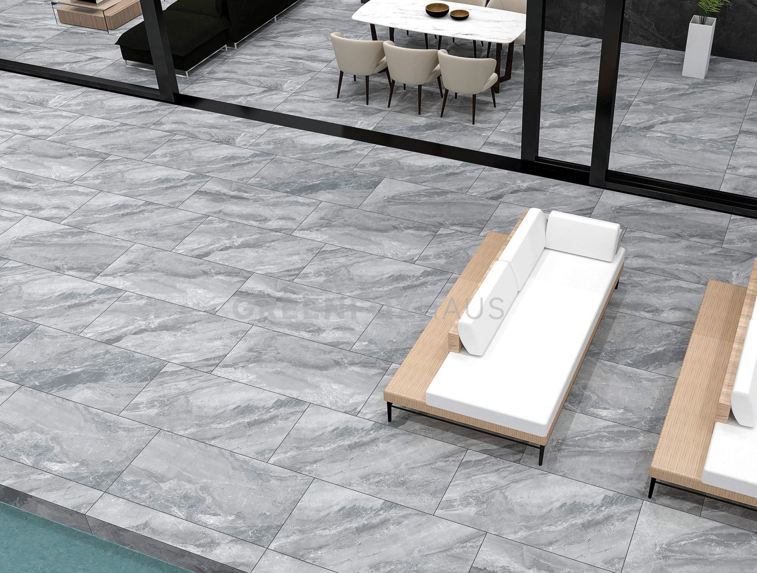 Mẫu gạch GF37.GLC02 phù hợp cho nhiều không gian như phòng khách, phòng ngủ, phòng bếp, hành lang, showroom, văn phòng và nhà hàng nhờ tông màu xám hiện đại cùng họa tiết marble sang trọng.