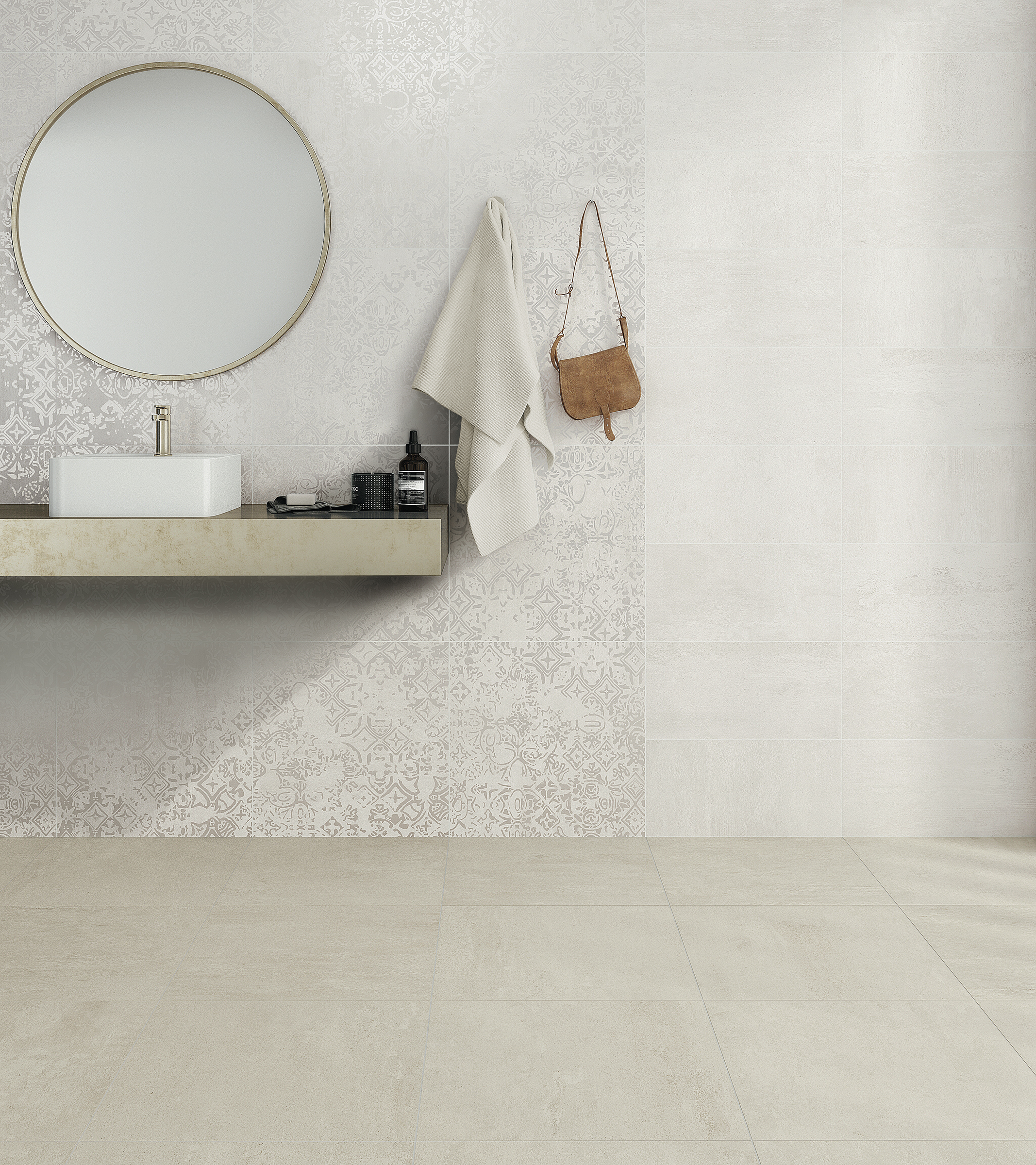 GF37.GCA02 mang tông màu be sáng nhẹ nhàng kết hợp vân đá xi măng tự nhiên, tạo cảm giác ấm áp và gần gũi. Sắc độ này giúp không gian trở nên sáng sủa nhưng vẫn giữ được chiều sâu thẩm mỹ.