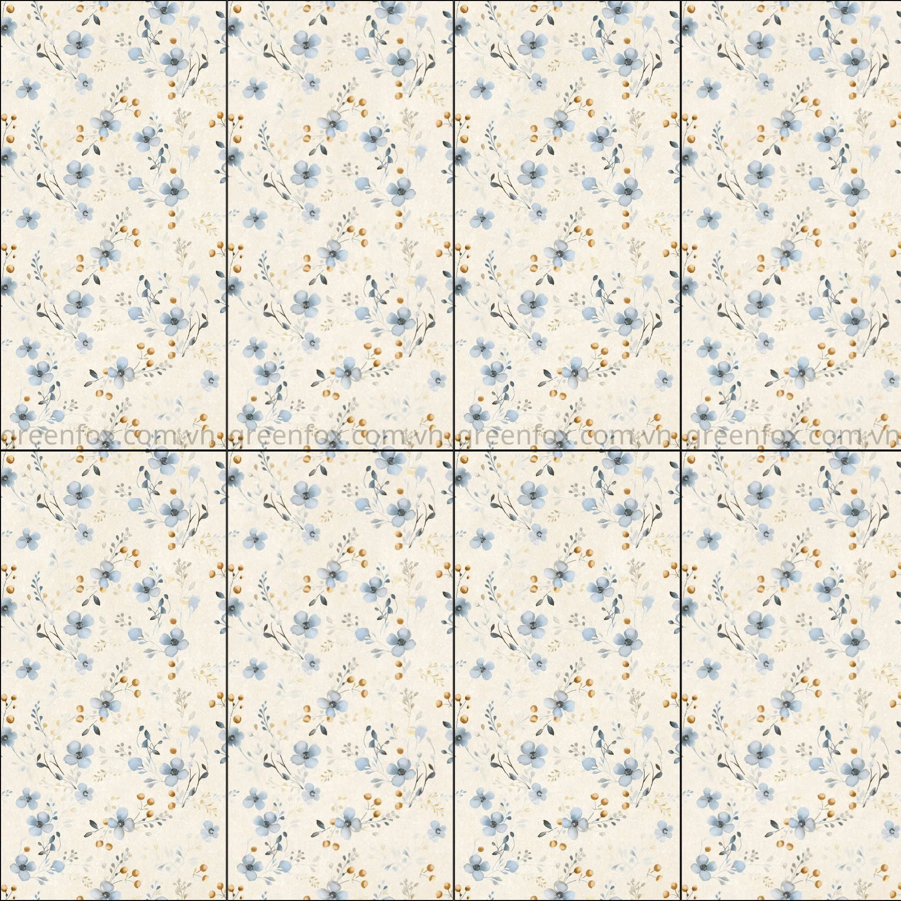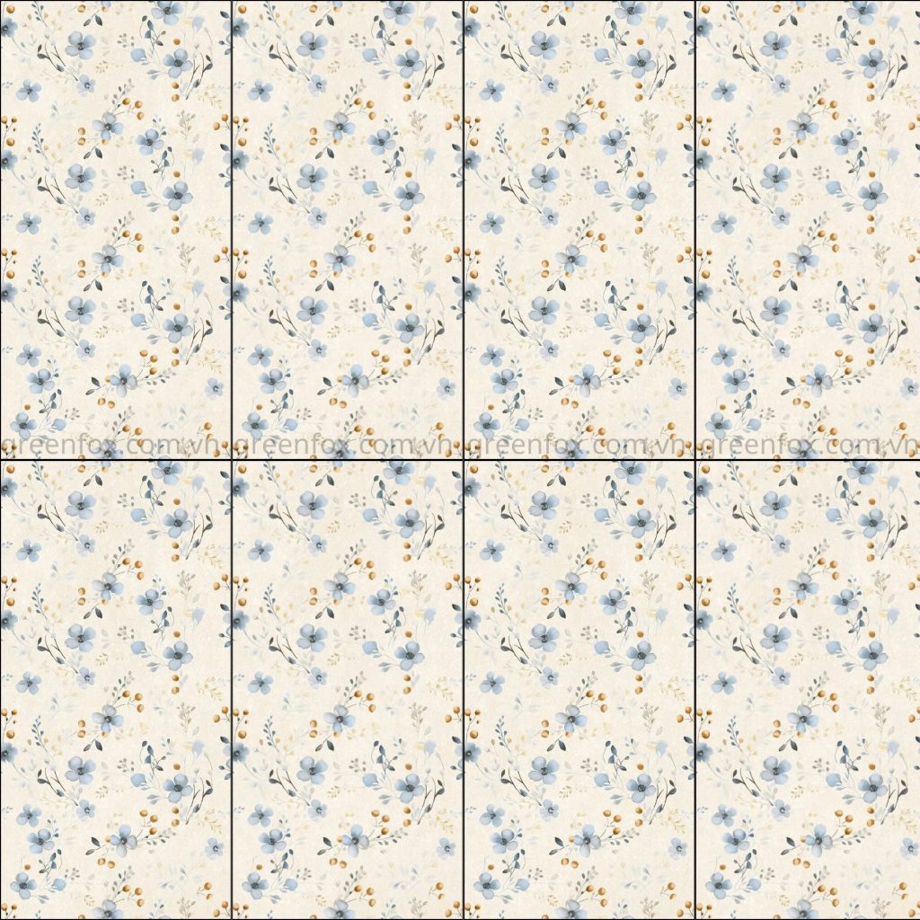 GF52.5803 mang phong cách nhẹ nhàng, thanh thoát với các chi tiết hoa nhỏ được phân bố tự nhiên trên nền sáng. Nhờ hiệu ứng bề mặt mịn nhám nhẹ, gạch giúp hạn chế lộ vết nước, dễ vệ sinh và phù hợp với điều kiện sử dụng thực tế trong nhiều không gian nội thất.