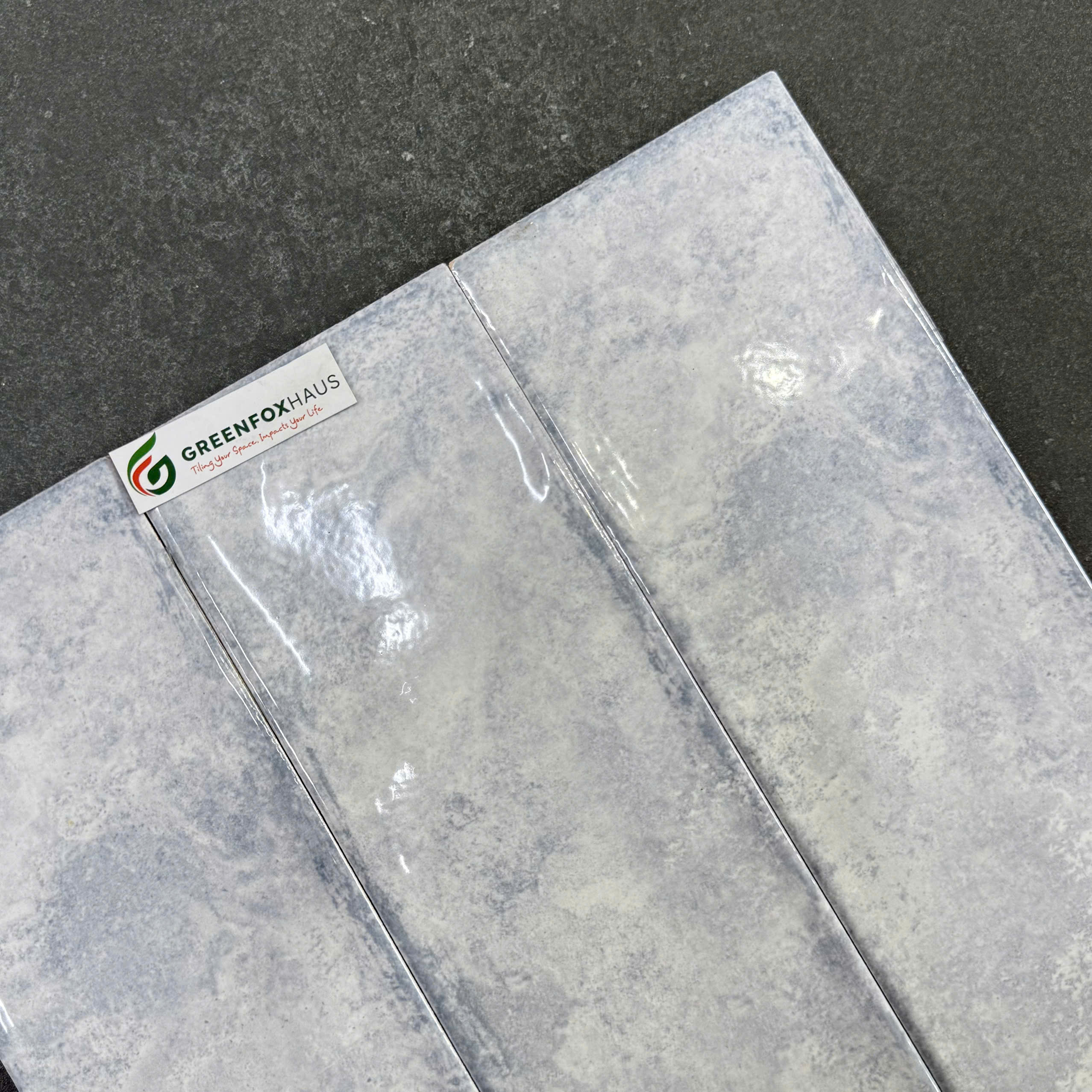 GẠCH THẺ ỐP TƯỜNG MEN BÓNG GỢN SÓNG VÂN LOANG TRẮNG XÁM (100×300MM)