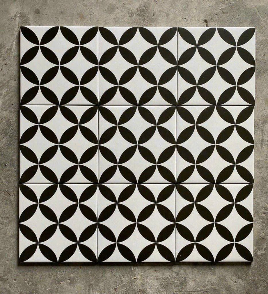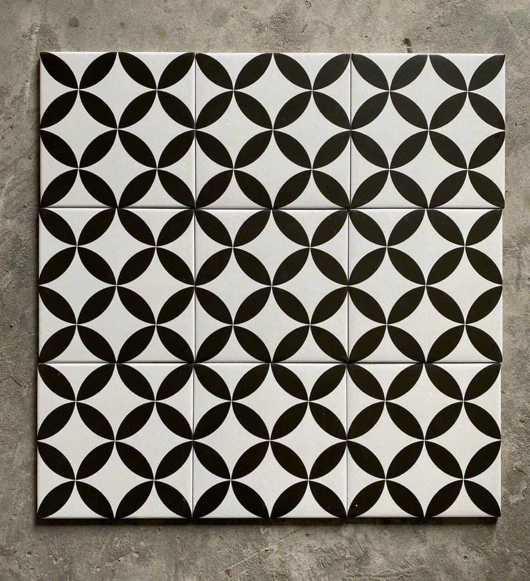 GF.F30013 với họa tiết hoa cách điệu đen trên nền trắng kem mang vẻ tối giản nhưng tinh tế, phù hợp cho không gian quán cà phê modern-retro, phòng đọc sách nhỏ, khu vực sảnh boutique hoặc phòng ngủ phong cách Minimalist pha hoài cổ. Khi lát full diện tích hoặc phối thành ô tạo điểm nhấn, mẫu gạch giúp mở rộng chiều sâu thị giác, đặc biệt hiệu quả trong không gian có ánh sáng tự nhiên hoặc tường sơn màu ấm.