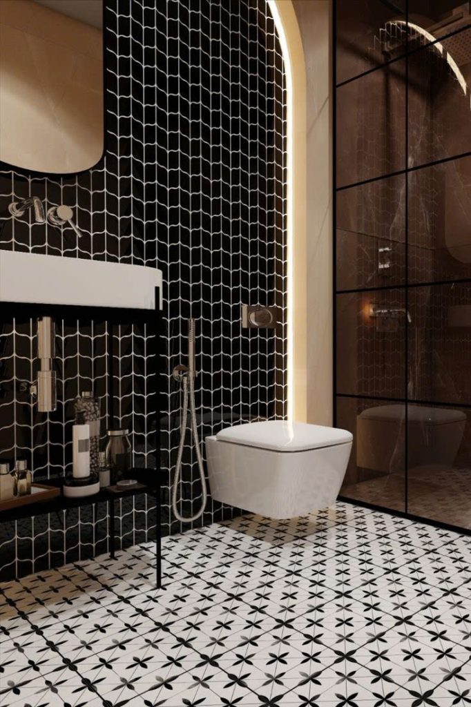 – Hoa văn tối giản đen – trắng, dễ phối cùng nội thất gỗ, xi măng, terrazzo hoặc nhựa giả gỗ