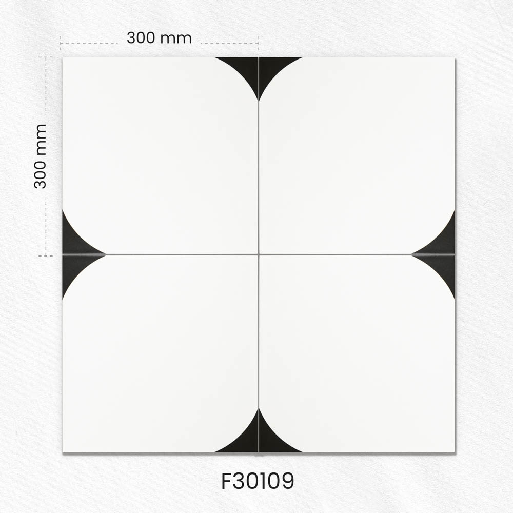 GF.F30109 là mẫu gạch bông viền bo góc thường được sử dụng trong bố cục lát nền Indochine hoặc layout cổ điển. Thiết kế viền đen trên nền trắng tạo điểm chuyển hướng thị giác tinh tế, thích hợp dùng cho hành lang resort, khu vực sảnh, phòng trà, lối đi hoặc phối cùng gạch họa tiết chính để định hình khung nền.