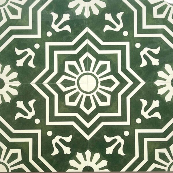 – Tông xanh rêu đậm, hoa văn đối xứng cổ điển