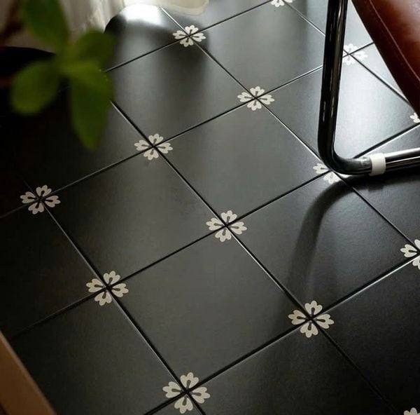 GF.MF3192 mang vẻ tối giản hiện đại với nền đen sâu, chỉ điểm nhẹ họa tiết ở 4 góc tinh tế. Mẫu gạch phù hợp cho các không gian phong cách Minimalist, Japandi tối màu, quán cà phê cá tính, nhà hàng sang trọng hoặc khu vực sảnh cần tạo sự tĩnh lặng và phong thái. Khi lát full diện tích, mẫu tạo cảm giác vững chắc, trầm ổn, giúp nội thất và ánh sáng nổi bật hơn. Cũng có thể kết hợp với gạch bông hoa văn cùng bộ hoặc dùng làm viền tạo bố cục nghệ thuật. Thích hợp cho phòng khách tông tối, hành lang boutique hotel, quầy bar hoặc những công trình hướng đến sự kiêu kỳ tinh giản.
