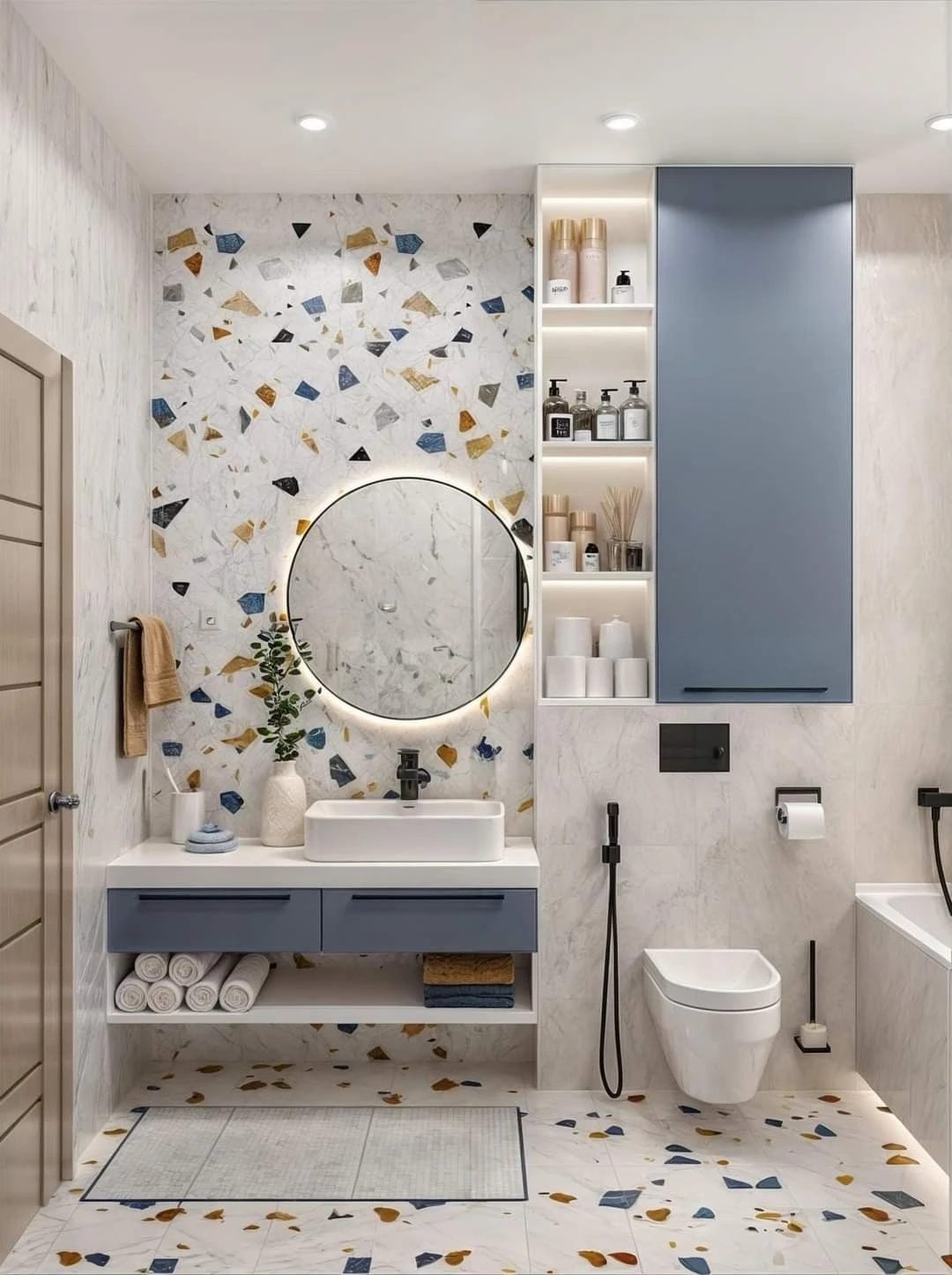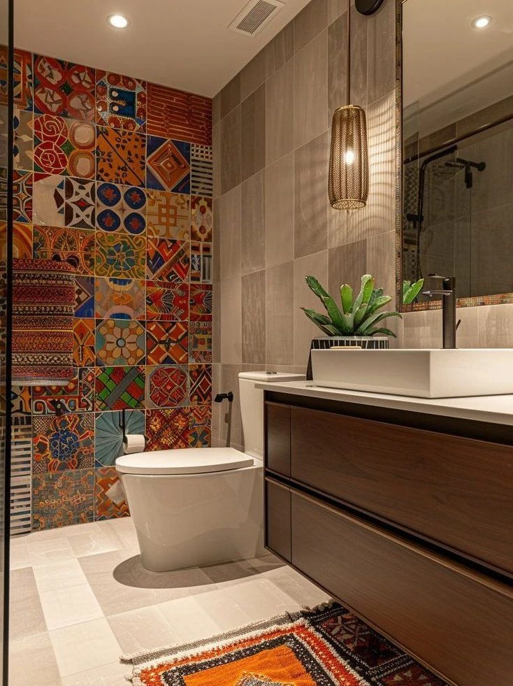 Với phong cách Eclectic, phòng tắm giống như một “bảo tàng thu nhỏ”, nơi quá khứ và hiện tại hòa quyện. Sự pha trộn ngẫu hứng nhưng tinh tế khiến không gian vừa lạ mắt, vừa giàu chiều sâu thẩm mỹ.