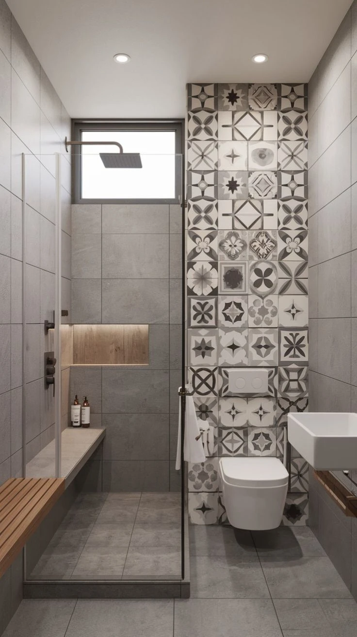Những mẫu gạch ốp lát giả xi măng, gạch thẻ hoặc gạch khổ lớn là lựa chọn hoàn hảo để tái hiện không gian công nghiệp đầy cuốn hút. Vừa đảm bảo độ bền cao, vừa mang lại tính thẩm mỹ độc đáo, chúng giúp phòng tắm trở nên ấn tượng và dễ dàng ứng dụng trong thực tế.