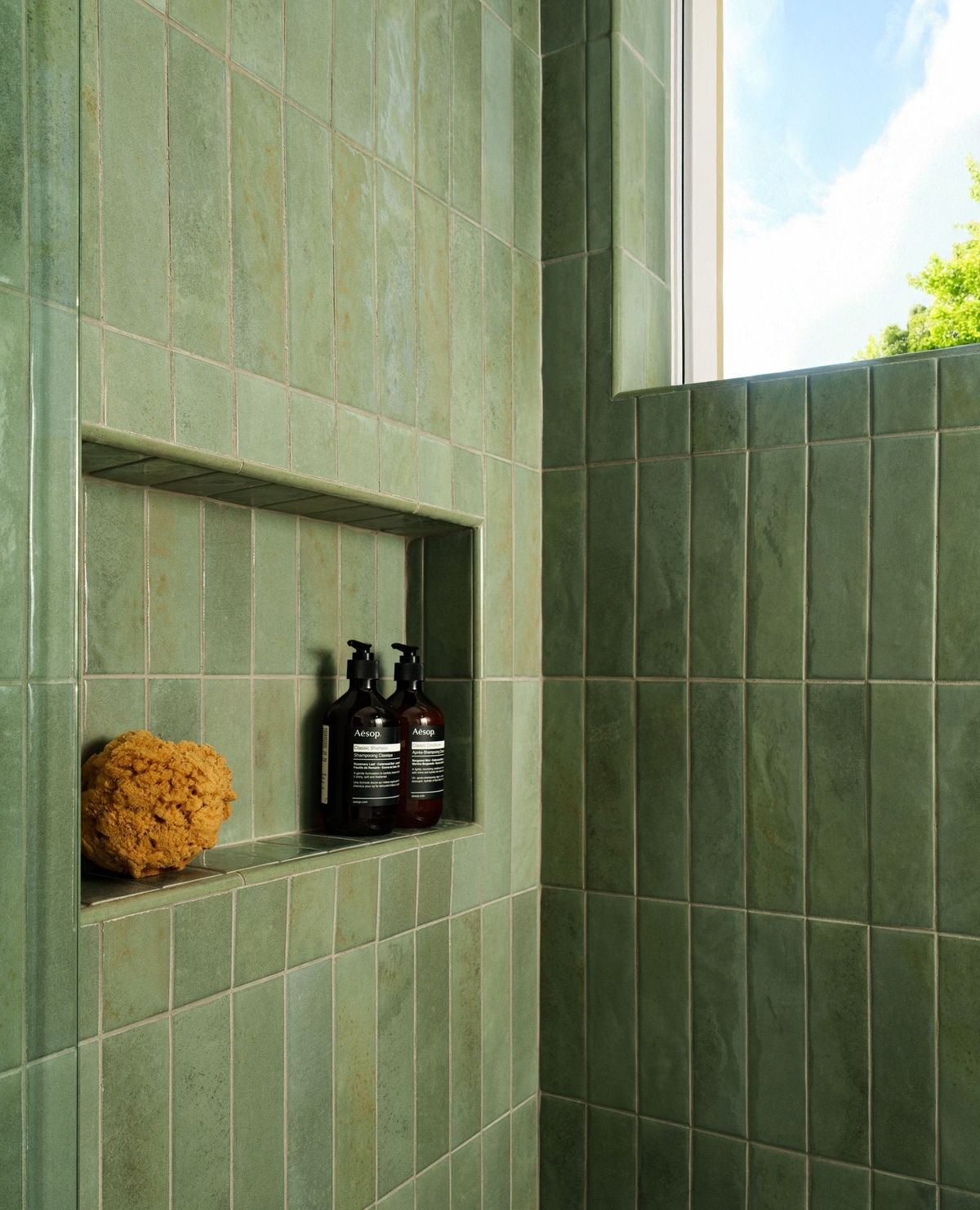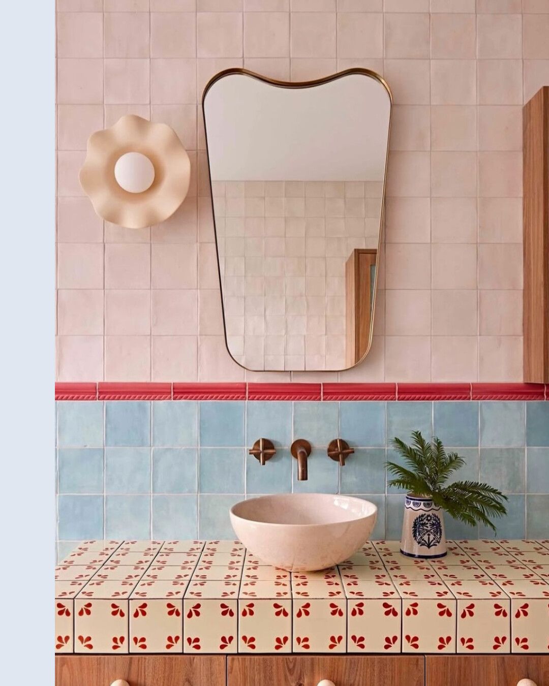 Có thể kết hợp cùng gạch terrazzo, marble hoặc pastel để tạo bảng màu tự nhiên, hoặc dùng riêng làm điểm nhấn – đều nổi bật mà không gây rối mắt.
