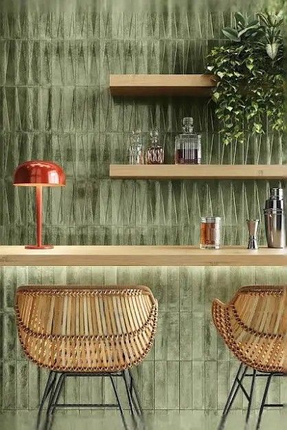 Gạch ripple phối cùng gỗ, terrazzo hoặc cây xanh – tạo không gian sống “organic” đúng tinh thần sống xanh hiện đại.