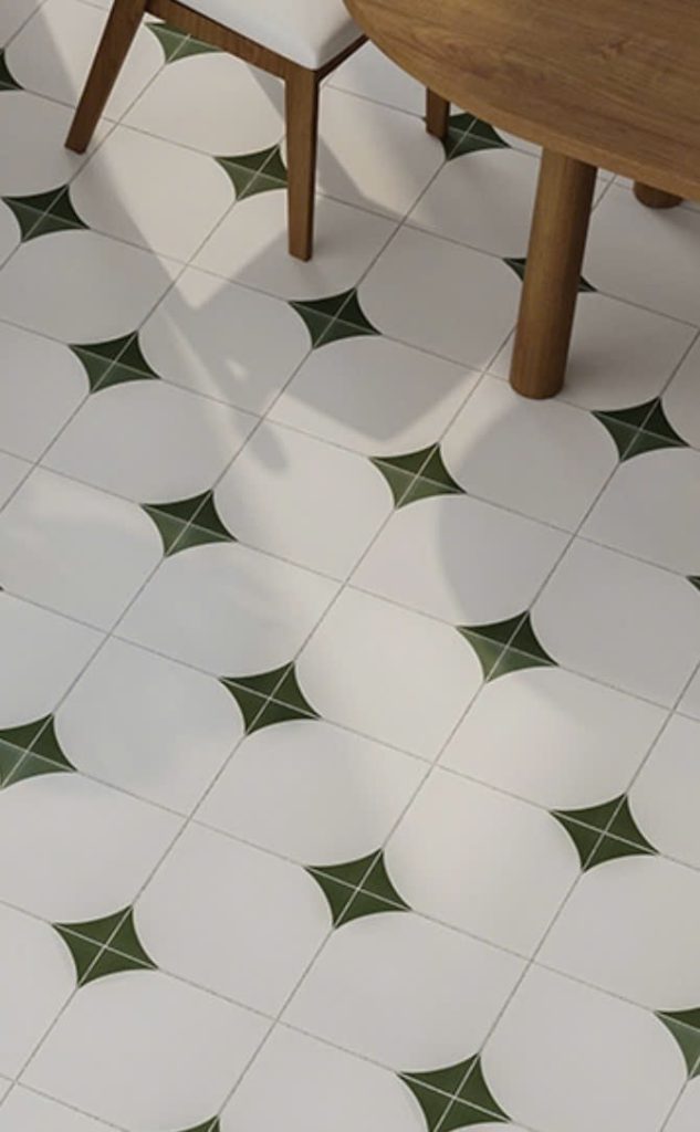 – Gạch bông đơn sắc hiện đại, phối hình học tinh tế.