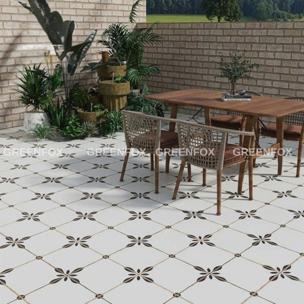 GF.MFG4085 mang đậm dấu ấn Vintage tối giản, họa tiết lá cách điệu nhẹ nhàng trên nền trắng tinh khiết. Sự tương phản đen – trắng giúp mẫu gạch nổi bật nhưng vẫn giữ vẻ thanh lịch, dễ phối hợp nhiều phong cách nội thất.