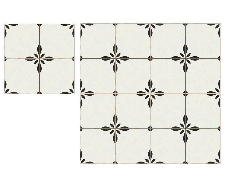 GF.MFG4085 mang đậm dấu ấn Vintage tối giản, họa tiết lá cách điệu nhẹ nhàng trên nền trắng tinh khiết. Sự tương phản đen – trắng giúp mẫu gạch nổi bật nhưng vẫn giữ vẻ thanh lịch, dễ phối hợp nhiều phong cách nội thất.