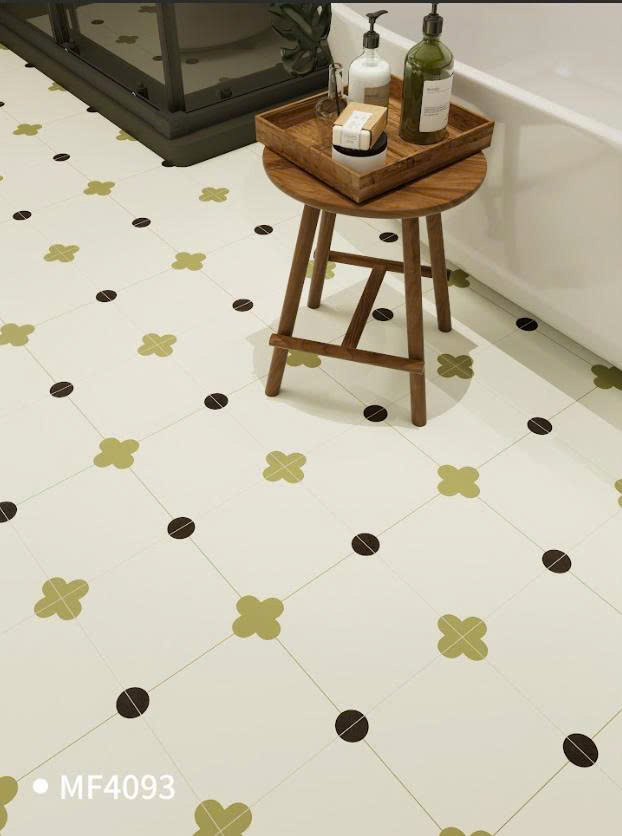 GF.MFG4093 mang phong cách Indochine hiện đại, kết hợp giữa họa tiết hoa thị mềm mại và gam màu xanh olive thanh thoát. Mẫu gạch tạo cảm giác tinh tế, nhã nhặn nhưng vẫn nổi bật khi lát trên diện rộng.