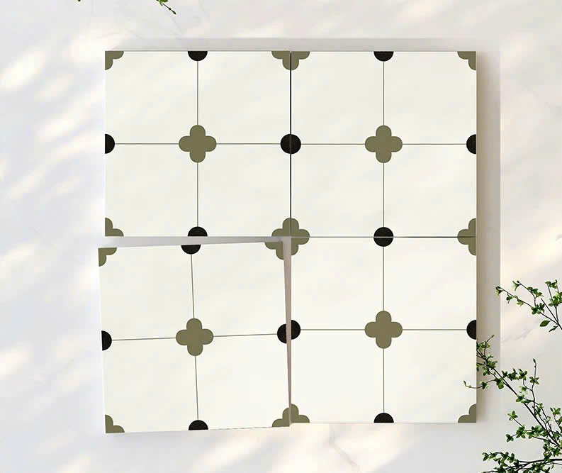 GF.MFG4093 mang phong cách Indochine hiện đại, kết hợp giữa họa tiết hoa thị mềm mại và gam màu xanh olive thanh thoát. Mẫu gạch tạo cảm giác tinh tế, nhã nhặn nhưng vẫn nổi bật khi lát trên diện rộng.