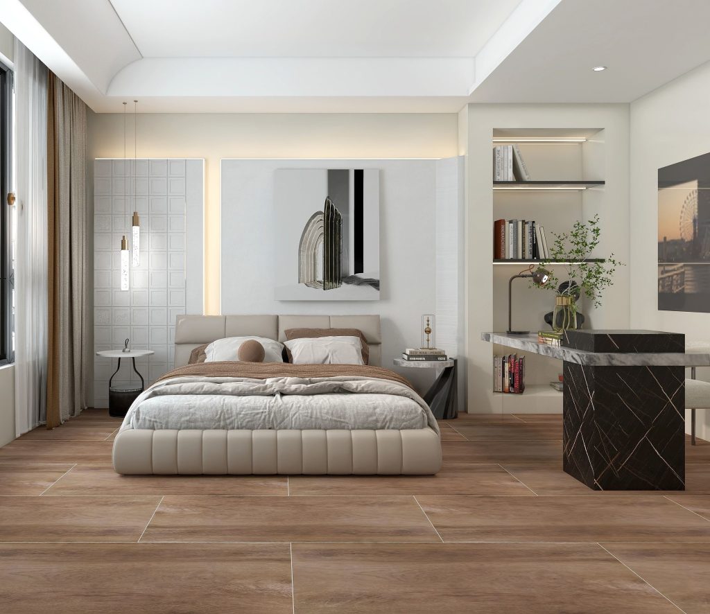 GF47.627B tái hiện chân thực vẻ đẹp của gỗ tự nhiên với sắc nâu trung tính trầm ấm, đường vân uyển chuyển, nhẹ nhàng. Tông màu này giúp không gian trở nên ấm áp, sang trọng nhưng không quá cầu kỳ, mang tinh thần natural modern – giản dị mà tinh tế.