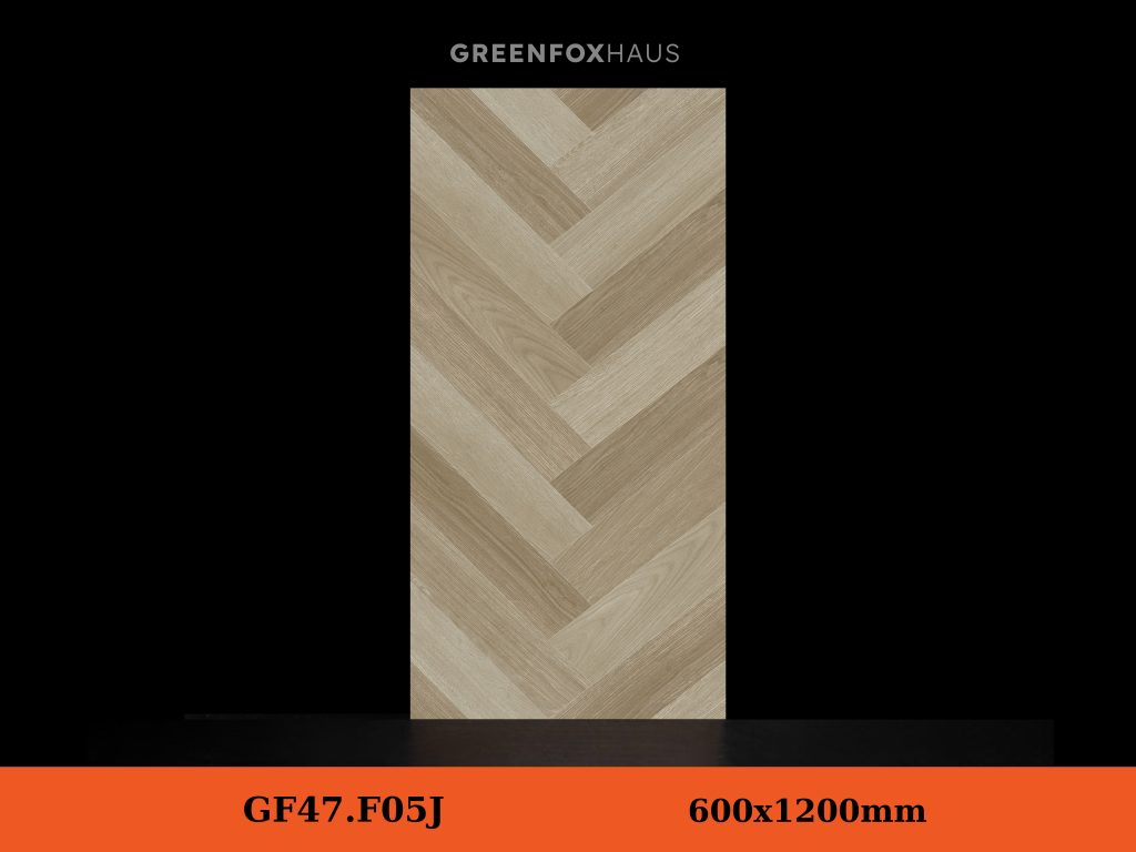 GF47.F05J là mẫu gạch vân gỗ xương cá 600×1200mm được yêu thích trong các công trình theo xu hướng Scandinavian, Japandi, Tropical và Modern Resort.