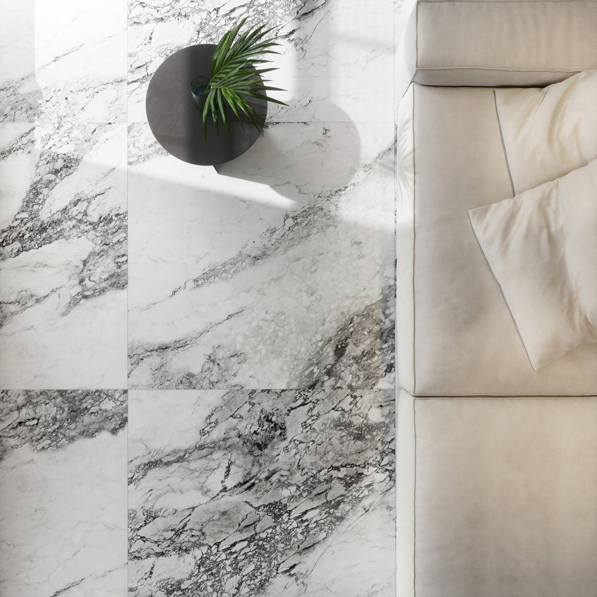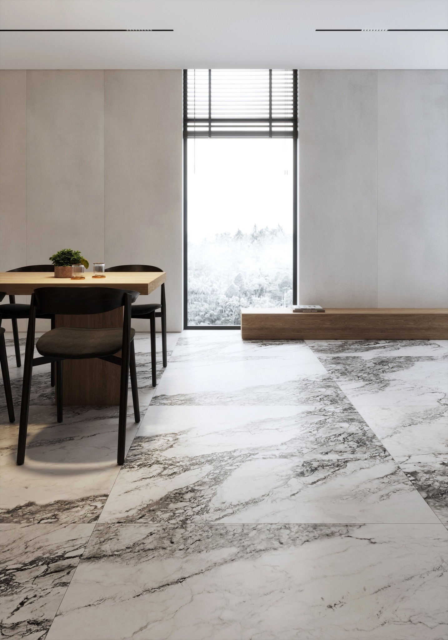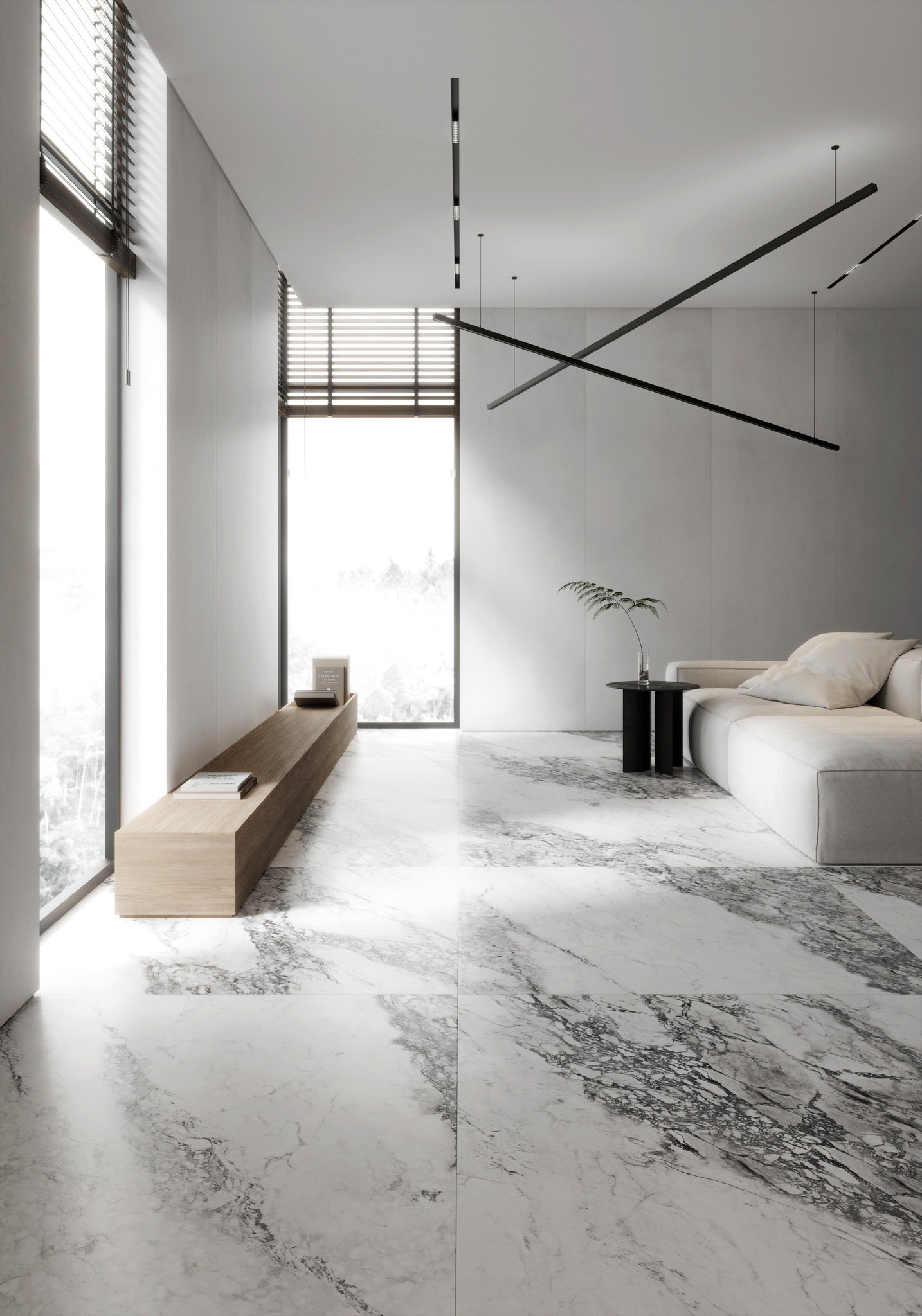 GF5.12012H sở hữu sắc trắng tinh khôi điểm xuyết những vân đá xám đậm – loang tự nhiên, mang vẻ đẹp phóng khoáng và cuốn hút. Tựa như dòng chảy bất tận của thiên nhiên, từng mảng vân đá trên bề mặt gạch tạo nên chiều sâu sống động, mang hơi thở hiện đại nhưng vẫn giữ nguyên sự sang trọng vốn có của Marble.