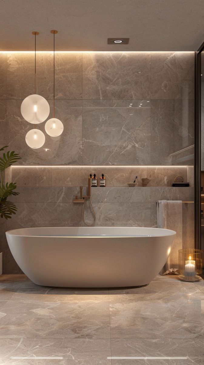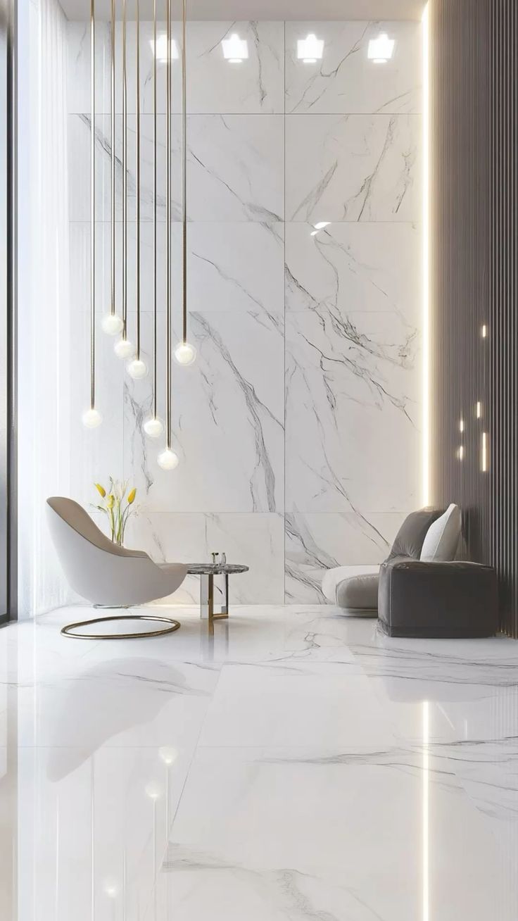 Không gian đồng nhất giúp mở rộng cảm giác thị giác. Một phòng tắm lát gạch marble từ sàn đến tường không chỉ sang trọng, mà còn tạo cảm giác thư giãn như spa. Một phòng khách phủ big slab khổ lớn mang lại sự liền mạch và ấn tượng ngay từ ánh nhìn đầu tiên. -